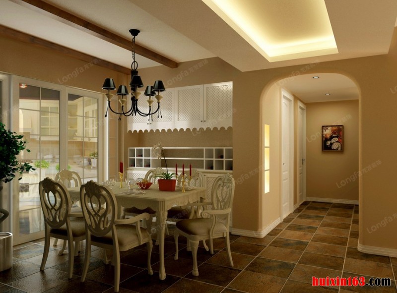 本套装修为田园型装修,卧室地面采用地板装修,局部采用的地毯进行装饰,墙面采用的墙纸进行装修,墙面采用墙纸进行装修,吊顶采用石膏板进行平顶吊顶,加以吊灯做装饰,简洁的家具,质地舒适的床,合理选择与布置,空间追求自由、自然、浪漫、简洁的家具生活环境,注重生活情趣和生活品质。通过实用性和观赏性相结合的手法,营造一种质朴的生活,给人一种田园的美观。