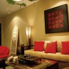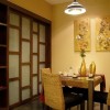 本套装修为东南亚型装修,餐厅地面采用大理石装修,墙面采用的墙纸进行装修,吊顶采用石膏板进行平顶吊顶,加以吊灯做装饰,餐厅采用了藤编的座椅,使其达到了舒适度,体现了以人为本的设计概念,同时也增添了整体的美观,质朴的家具,墙上的挂画,处处都充满着异域的风情,空间注重细节的把握,使气质变得生动、活泼,营造了一个舒适优雅的空间。