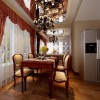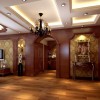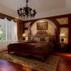 本套装修为西式古典型装修,卧室地面采用地板装修,局部采用地毯进行装饰,墙面采用的是墙纸进行装修,吊顶采用石膏板进行平顶吊顶,加以吊灯做装饰,床头采用的是拱形,展现出了拱形的装饰,不仅美观,还具有豪华、动感、多变的效果。在造型上,线条勾勒出不同的装饰造型,气势恢宏、典雅大气。在家具配饰上,以华丽、明亮的色彩,配以精美的造型达到雍容华贵的装饰效果。给人一种华丽的感觉。