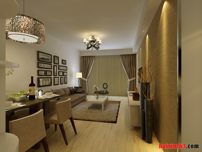 本套装修为现代简约型装修,客厅地面采用地板装修,局部采用地毯进行装饰,墙面采用白色乳胶漆进行装修,吊顶采用石膏板进行平顶吊顶,加以吊灯做装饰,舒适的沙发,沙发墙上采用了照片进行装饰,不仅美观,还具有纪念意义,客厅的右边是餐厅,纯天然的大理石餐桌配以白色的餐具,彰显出干净,餐桌上的水果,看了都让人流口水,美味极了,空间整体给人一种简单而不简约的和谐之美。 更多»推荐小区效果图