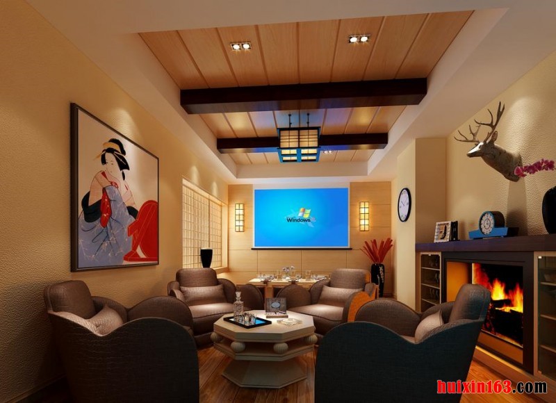 本套装修为日韩型装修,门厅地面采用砖型的大理石装修,背景墙的花格与顶面的造型都做成水滴状,增加了空间的延伸性,加以射灯做装饰,就好像夜晚天空的星星,繁星点点,眨巴眨巴眼睛,散花着银色的光芒,而带有灯箱的吧台,营造出了一种安谧的氛围,右手边的大屏风既遮挡了入口处,相互通透,又增加了整个空间的日韩风情。衍生出一个惬意的感觉,突出了浓郁的日韩式风格。